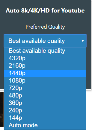 Automatically set YouTube videos to play in HD, 4K, 8K mode.